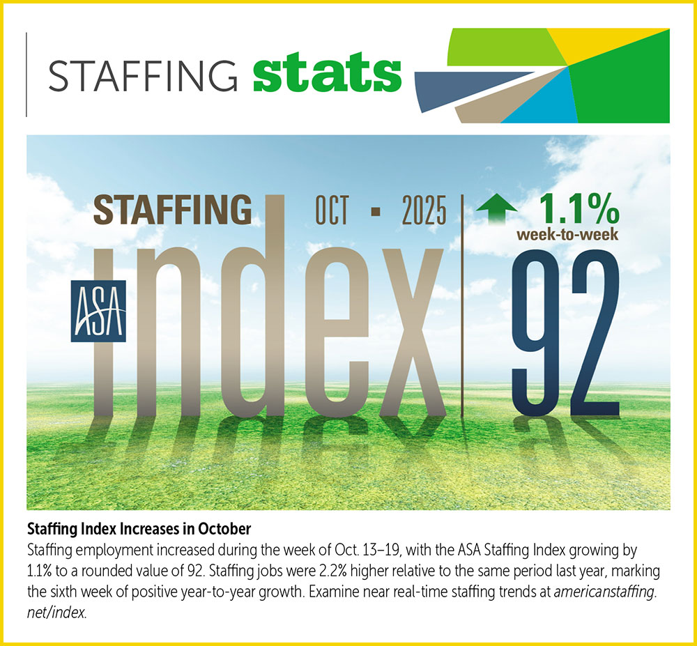 Don’t miss tomorrow’s ASA webinar “From Cost Cutting to Competitive Advantage: The Nearshore Shift,” 2–3 p.m. Eastern time. Learn from business analysts Glenda Quiroz and Adleigh Hunter how nearshore hiring—outsourcing work to countries close by instead of several time zones away—is helping staffing firms scale operations, maintain delivery speed, and unlock agility in a blended staffing model. Sponsored by ASA corporate partner VensureHR Staffing Alliance.